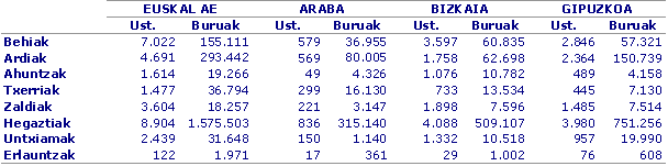 Alabaina, ustiategi hauetako buru kopurua hazi egin da behi-aziendan (%1,2), ahuntz-aziendan (%1,5), zaldi-aziendan (%4,6) eta untxiamen aziendan (%9,0). Honakoetan, aldiz, txikiagoa da: txerri-aziendan (-%9,9), hegaztienean (-%7,9) eta ardi-aziendan (-%0,8).