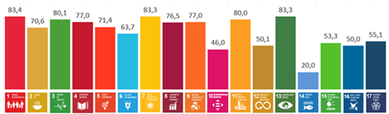 2030 Agendaren Garapen Iraunkorreko 17 Helburuetatik, Euskadik ondokoetan du egoera aurreratuena: 7 Energia eskuragarria, fidagarria, jasangarria eta modernoa bermatzea guztiontzat (adierazleen % 83,3an helburua lortu da edo lortzeko bidean dago), 13 Neurri urgenteak hartzea klima-aldaketaren eta haren ondorioen aurka egiteko (% 62,5) eta 11 Hiriak eta giza kokaguneak inklusiboak, seguruak, erresilienteak eta jasangarriak izatea lortzea (% 60).