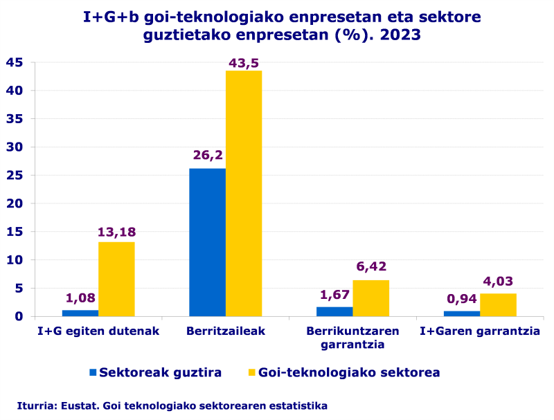 Goi-teknologiako sektoreko berrikuntzan (% 6,4) eta barneko I+Gn (% 4,0) sektoreen guztizkoan baino (% 1,7 eta % 0,9, hurrenez hurren) Intentsitate handiagoa